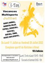 Bonjour, Les inscriptions pour les VACANCES MULTISPORTS sont ouvertes… elle se déroule du LUNDI 11 JUILLET au VENDREDI 29 JUILLET 2022 au COMPLEXE SPORTIF DE KERICHEN-VAUBAN – Rue de Kérichen, pour les enfants et les jeunes de <