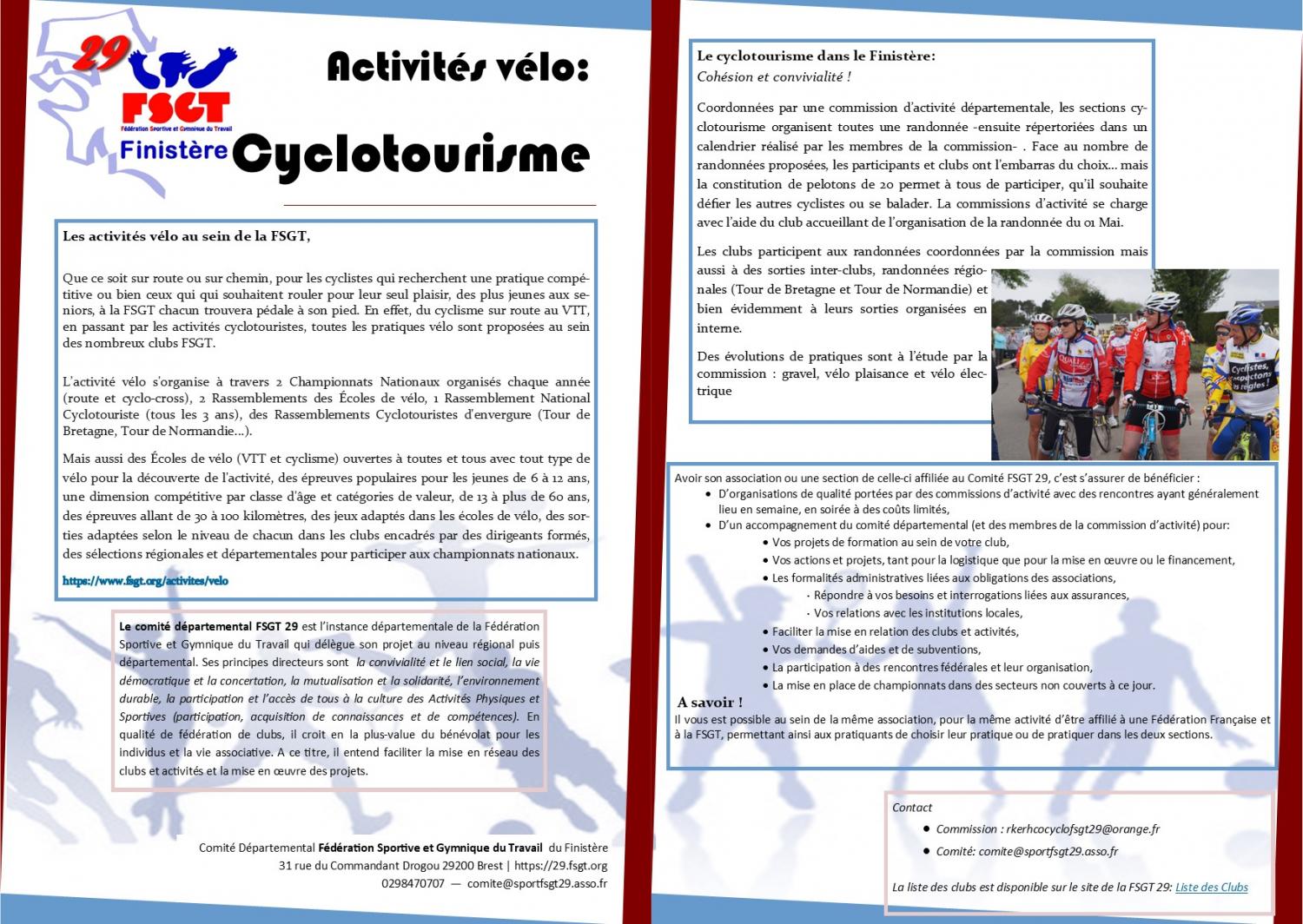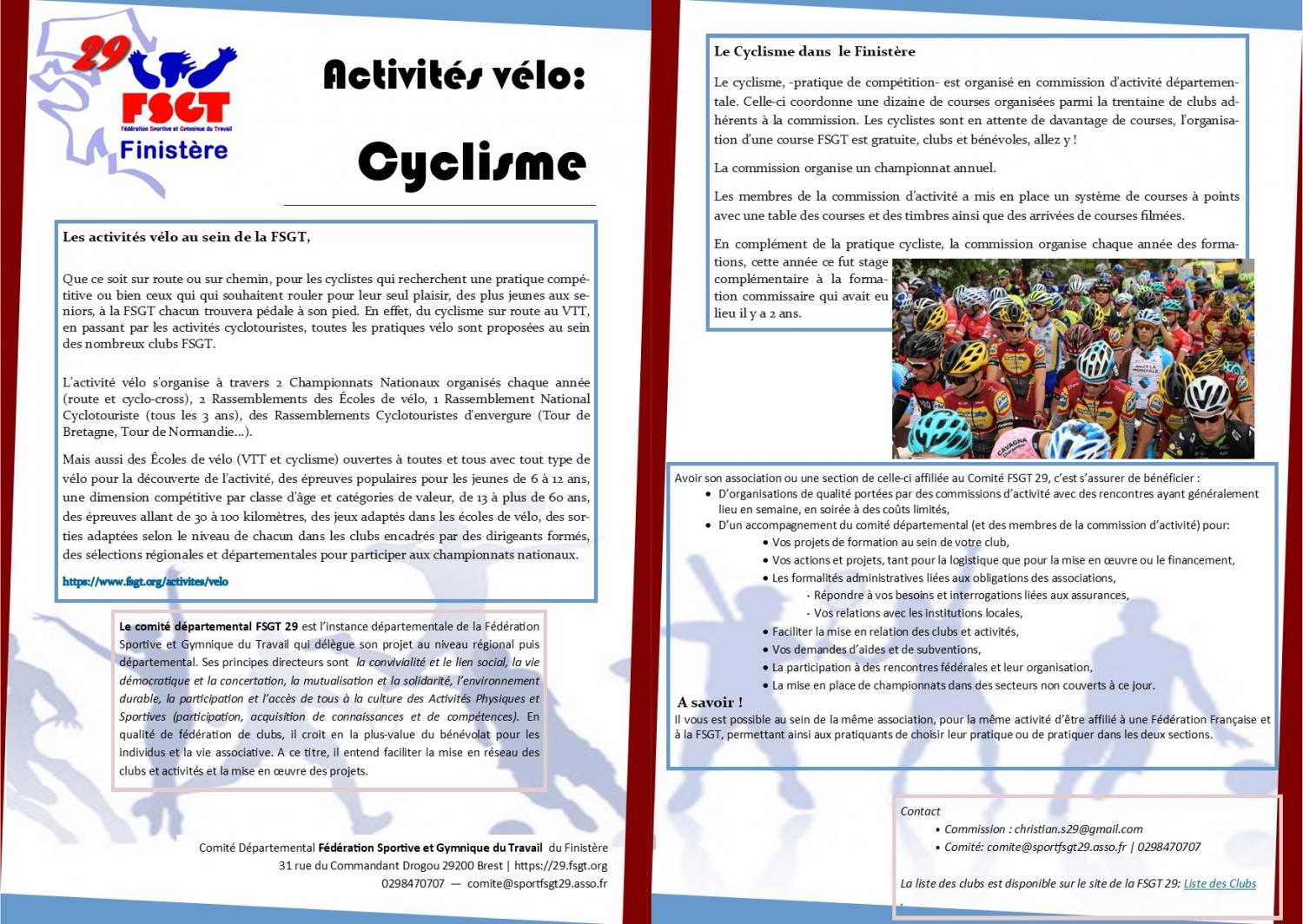 Activités Vélo: Présentation et Mémento ven, 17/07/2020 - 15:53 | comite29fsgt Le mémento vélo est disponible ici Type de document: Affiche Fichier attachéTaille vtt.pdf534.5 Ko cyclisme.pdf555.13 Ko cyclotourisme.pdf580.16 Ko