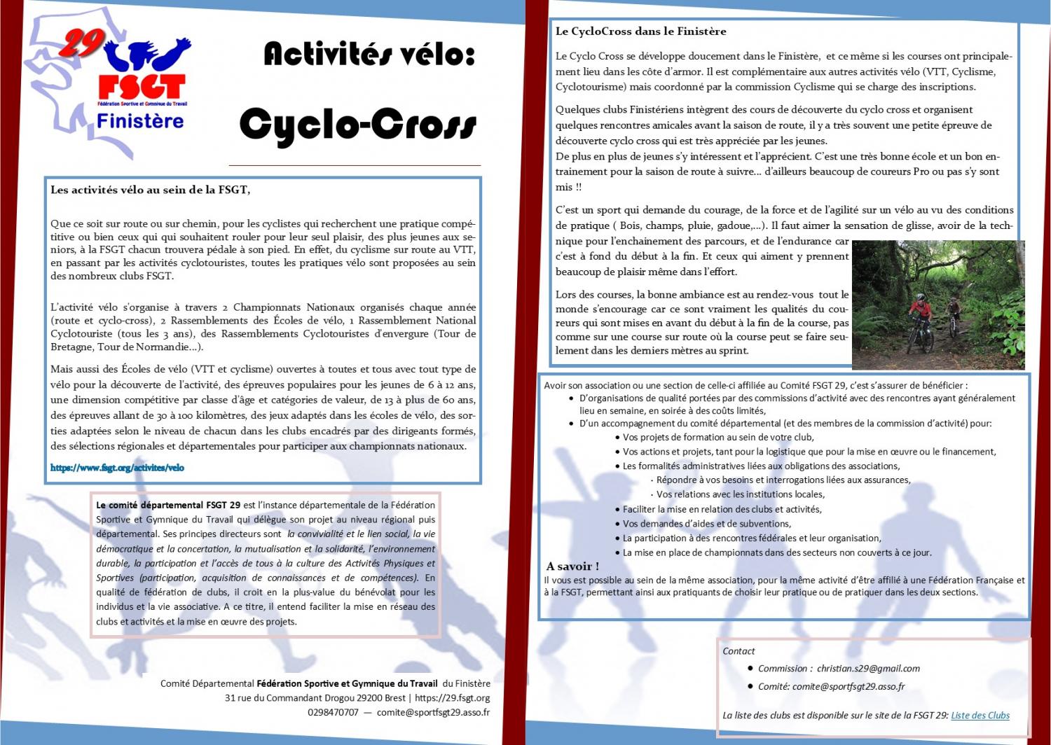 CycloCross ven, 17/07/2020 - 15:04 | comite29fsgt A la découverte du Cyclo Cross FSGT: https://www.youtube.com/watch?v=pmhBQVMYVV8 Type de document: Affiche Fichier attachéTaille cyclocross.pdf536.4 Ko