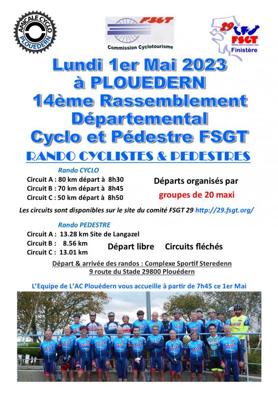 14ème RASSEMBLEMENT DEPARTEMENTAL CYCLO PEDESTRE FSGT - 1er Mai 2023 - PLOUEDERN
