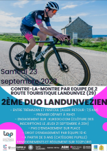 Bonjour, Avec l’appui de la commune de Landunvez, le club cycliste TO2P organisera la deuxième édition de la course cycliste le « Duo Landunvezien » le samedi 23 septembre 2023 à partir de 15h.