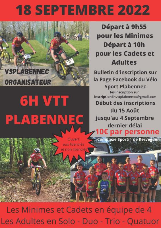Bonjour Le comité vous annonce les 6H VTT à PLABENNEC