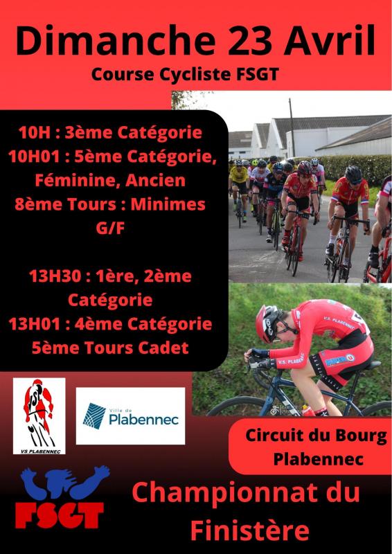 CHAMPIONNAT DU FINISTERE - Course Cycliste FSGT - Dimanche 23 avril 2023 - PLABENNEC