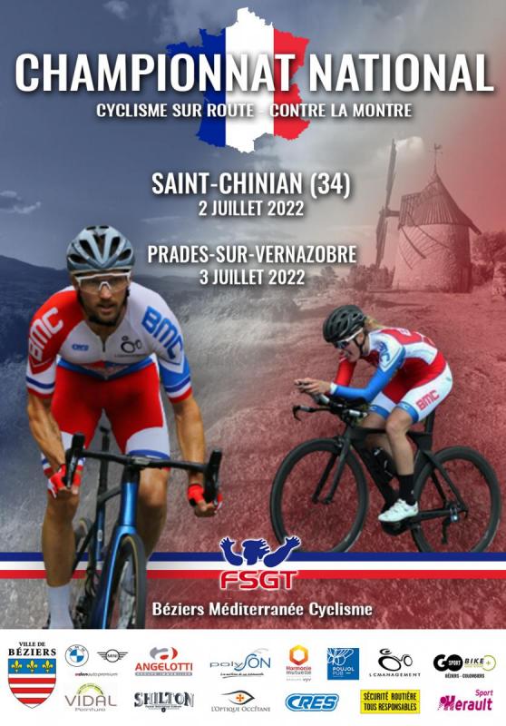 Bonjour, Voici vous trouverez en téléchargement libre ici la liste définitive des engagé(e)s du Championnat National FSGT de cyclisme Route et Contre la montre des 2 et 3 Juillet 2022 à St Chinian & Prades sur Vernazobre (34).