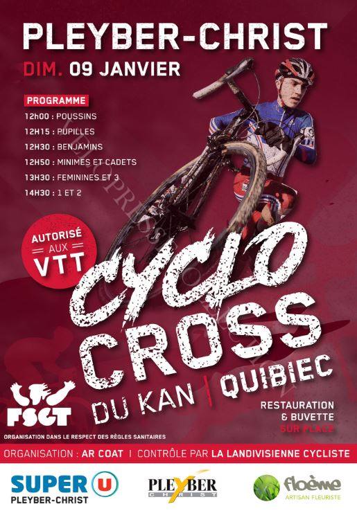 La Landivisienne Cycliste en collaboration avec l'association Ar Coat organise un cyclo cross FSGT au Kan Quibiec sur la commune de Pleyber Christ (29) le dimanche 9 janvier 2022.