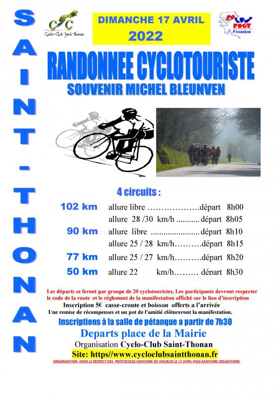 LA RANDONNEE CYCLOTOURISTE "Souvenir Michel Bleunven", le 17 AVRIL 2022 à SAINT THONAN