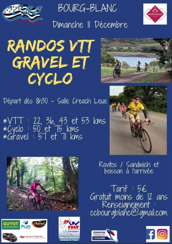 Le CC Bourg-Blanc est heureux de vous inviter à ses randonnées VTT, gravel et cyclo le dimanche 11 décembre 2022.
